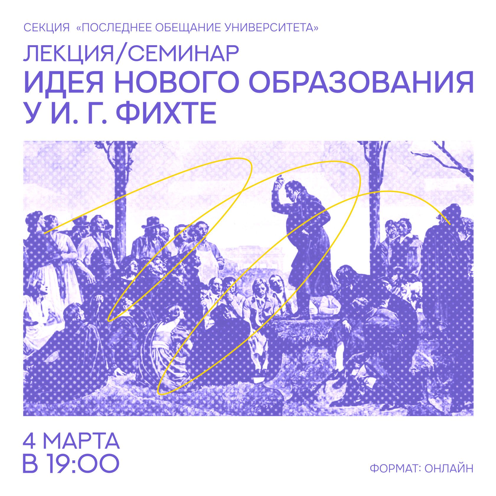 Но возможно ли преодолеть этот разрыв и примирить индивидуальную свободу с общественным единством? Немецкий мыслитель полагал: ключ для решения этой проблемы лежит в создании принципиально новой системы образования. На семинаре мы обратимся к первоисточнику – прочитаем и обсудим фрагмент из его знаменитых «Речей к немецкой нации», где Фихте подробно излагает свой взгляд на то, каким должно быть воспитание, способное соединить индивидуальное и всеобщее.
